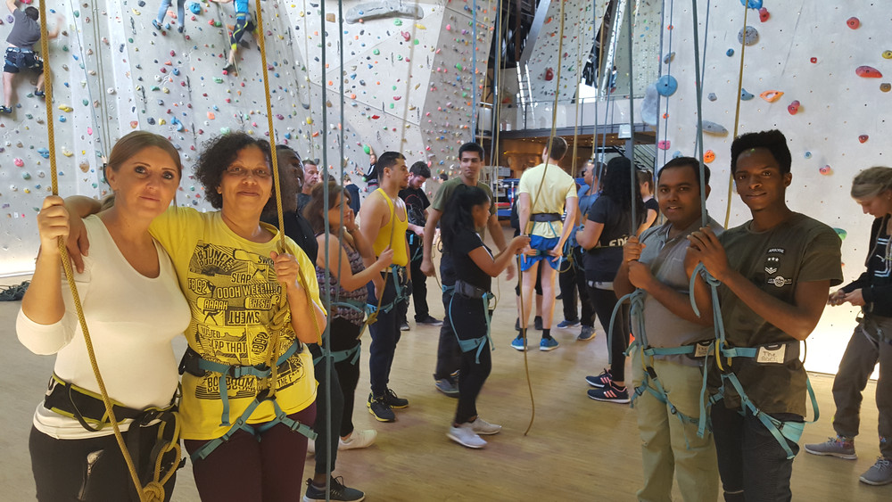 Rund 20 Auszubildende und deren Praxisanleitungen erlebten beim Azubi-Tag eine Herausforderung der besonderen Art. Gemeinsam ging es in die Kletterhalle nach Karlsruhe.