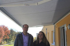 Dank der finanziellen Unterstützung durch die Glücks Spirale war es möglich eine Markise zum Schutz der Sonnenstrahlen am Erweiterungsneubau der Hausgemeinschaften des Seniorenzentrums Hardtwald über dem Balkon im Obergeschoss zu erwerben.