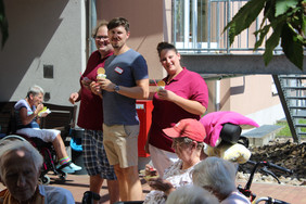 Am 07.August macht der Eiswagen wieder Station vor dem Seniorenzentrum und ermöglichte so den Bewohnern und Mitarbeitern eine kleine Erfrischung bei sommerlichen Temperaturen.