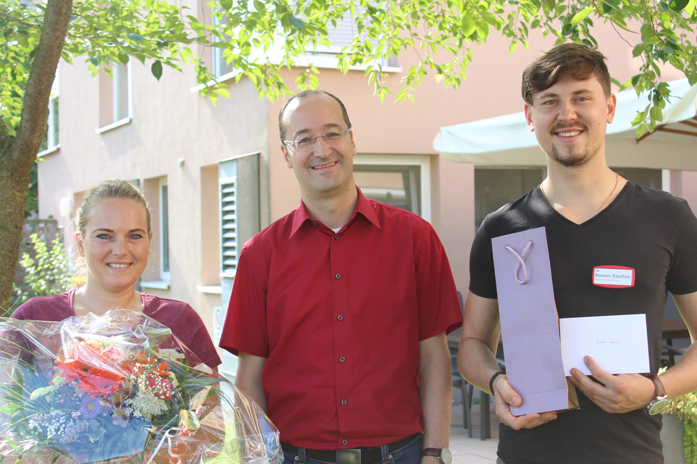 Ihre Weiterbildung zur Einrichtungsleitung konnte Nicole Scherer (Wohnbereichsleitung WB 3) ebenso erfolgreich abschließen wie Roman Raschin (Wohnbereichsleitung WB 2) seine Weiterbildung zum Pflegedienstleiter.