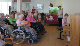 Am 12.10.2018 konnten unsere Bewohner und Bewohnerinnen einen ganz besonderen musikalischen Genuss erleben. Zwölf Klavierschüler im Alter von sechs bis zwölf Jahren trauten sich an die Tasten und präsentierten eingeübte Stücke. Die Klavierlehrerin und Musikpädagogin Frau Wirkner-Nakata stand ihren Schützlingen zur Seite. Trotz Nervosität meisterten die Nachwuchspianisten den Auftritt mit Bravour und spielten sich in die Herzen der Zuhörer darunter auch die stolzen Eltern. Wie immer wenn sich jung und alt begegnen wurde an diesem Nachmittag eine ganz besondere Atmosphäre spürbar J