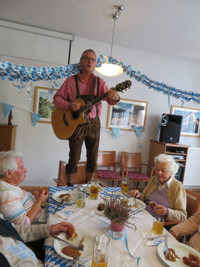 Für die Festgemeinde hieß es am 26. September 2018: „O’ zapft is!“ Mit großer Freude durften wir zu Beginn „Roland den Schürzenjäger“ als Ehrengast begrüßen. In bayrischer Tracht, mit Gesang und Gitarre sorgte Roland Lutz für beste Wiesnstimmung bei all unseren Bewohnern und Gästen. Bekannte Schlager luden zum Mitsingen und Schunkeln ein. Die ausgelassene Stimmung ließ einige Gäste sogar das Tanzbein schwingen.