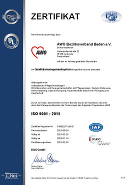 Im AWO Seniorenzentrum Hardtwald sind Sie in guten Händen – das bestätigt ein jährlich vergebenes, staatlich anerkanntes Qualitätszertifikat nach DIN EN ISO 9001:2015 und nach besonderen AWO-Qualitätsstandards. Bereits seit 2002 werden wir nach diesem Verfahren jedes Jahr erfolgreich zertifiziert – wie übrigens alle Seniorenzentren der AWO Bezirksverband Baden e.V.