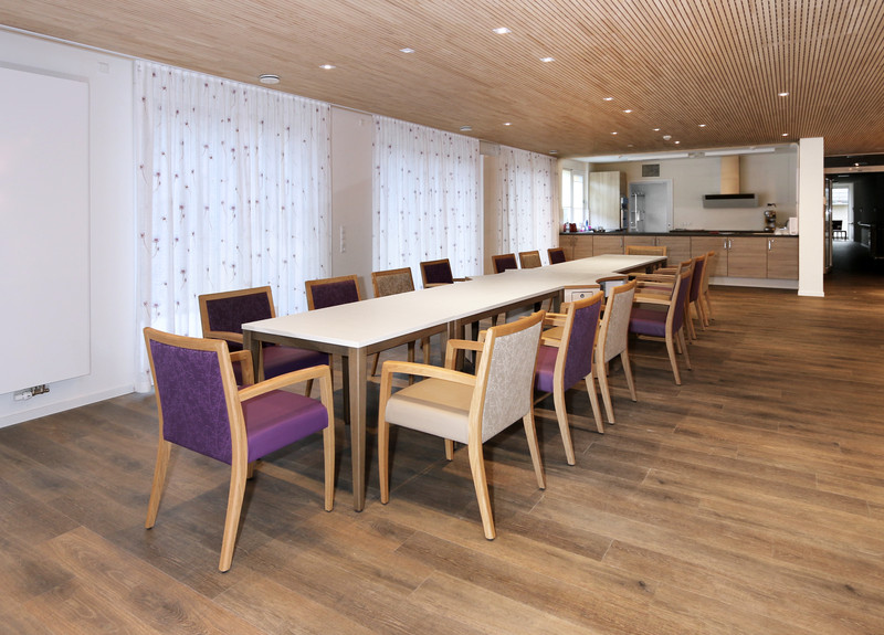 Ein anderes Konzept für mehr Lebensqualität – in unserem modernen Erweiterungsbau direkt am Rande des schönen Hardtwalds sind zwei familienähnliche Hausgemeinschaften untergebracht. Jeweils 13 pflegebedürftige ältere Menschen leben und wohnen zusammen in einer vollstationären Hausgemeinschaft mit gemeinsamer Küche sowie Ess- und Wohnbereich. Gleichwohl verfügt jede Bewohnerin und jeder Bewohner über ein Einzelzimmer mit barrierefreiem Bad und WC. Qualifizierte Alltagsbegleiter/-innen sind ständig präsent und sorgen für eine strukturierte, am gewohnten Alltag orientierte Tagesgestaltung – ganz wie unsere Bewohnerinnen und Bewohner das wollen und können. Übrigens: Dementiell erkrankte Menschen profitieren ganz besonders vom Hausgemeinschaften- Konzept.